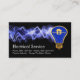 A blue electrical lightning zaps across the darkness and powers up a gold home electrical bulb. You are that power that brings light into homes. Near the base lies the business name and its contact details.