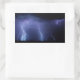An amazing photo of multiple lightning strikes hitting the ground against a blue/purple coloured sky.