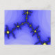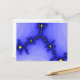 The design on this postcard was inspired by my love of thunderstorms. There are three forks of bright yellow lightning coming from the centre of the layers of subtly coloured blue clouds.