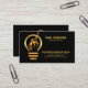 Overleaf, a gold bulb logo you can use is at the top. This is followed by your prestigious name, contact details and a slogan option to publicise your services. All lettering here are in faux gold.
