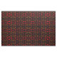 This modern brilliantly coloured geometric fabric design features a primitive ethnic abstract pattern of lightning and suns in earth tones of orange, red, black and brown.