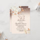 A modern, chic and glamourous invitation with an elegant gold tiara, string lights, glitter bokeh ombre, and flowers.