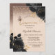 A modern, chic and glamorous QUINCEAÑERA with an elegant gold tiara, string lights, glitter butterflies, and black roses.