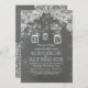 Rustic and elegant chalkboard engagement party invitation with mason jars, string lights and lace