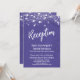 Over a purple background that can be changed to any colour or hue you prefer, I've placed a subtle transparent rustic paper texture that adds depth and interest to the paper. In a modern, casual handwriting script font, I've created a graphic for the word "Reception". All other text is fully-editable; please feel free to use the template fields to add your details and click to customise further if you need to resize, reposition, or even change this font. The top of the design is accented with several different graphics depicting a variety of styles of twinkling bright lights adding a fun, festive vibe for your special occasion. Please be sure to reach out if you have special requests or need help with customising. // 105 //