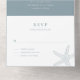 This wedding design is a perfect blend of elegance and beachy vibes. The main feature of the design is a small white starfish motif that sits gracefully in the centre of the dusty blue coloured background. The starfish motif is intricately designed and adds a touch of nature to the invitation. The typography used is classic white, which adds a touch of sophistication and ensures that the text is easy to read. The font style used is clean and modern, creating a timeless look that will never go out of fashion.