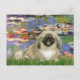 Water Lilies by Impressionist Claude Monet (1914), adapted to include a Pekingese. One of many water lily paintings, this one has red or bright pink lilies in the pond. It sold at auction in 2008 for over 70 million.