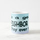 and it goes like this "Like a Good Neighbour Stay over there" and see if they respond or see this cup,or even a doormat and see if they laugh or if you have guests come over and hear a laugh or two.Please enjoy.