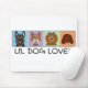 Four dogs all different breeds and text that reads "Li'l Dog Lover" on dog lover T-shirts, mugs, tote bags, stickers, and more.