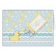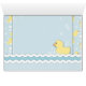 Little ducking swimming on lake with ric rac trim as water with ducks and bubbles print.