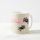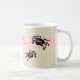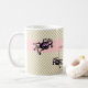 For a fun gift or keepsake for the parents-to-be give this adorable little spider baby shower themed mug. The mug offers a cream chequerboard background with a light pink strip running horizontally across the top half of the mug. The background has been combined with four spiders, two big spiders sitting to the left and right of the light pink strip and two little spiders hanging from their spiders threads to the bottom half of the mug. The lettering has been positioned to the front of the mug and can be personalised with your own Halloween baby shower party details. Great to use for an It's A Girl Halloween baby shower party celebration. Visit the store to find more little girl spider designs to compliment your theme.