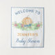 This cute Lil' Pumpkin baby shower welcome tapestry for either a boy or girl features an autumn theme with an orange pumpkin decorated with blue and pink flowers. The text at the top says "Welcome to" Personalise this baby shower invite with your name and the date of your event. This indoor or outdoor tapestry for a baby shower is so sweet for a drive by, outdoors, or virtual shower.