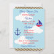 Cute red and blue anchors, sailboat, baby boy and teddy bear sitting on a boat in sailor gear. Boy's baby shower invitations. Cute for a sailboat, oceanic or nautical theme.