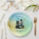 It's a Lil' Slugger baseball and puppy dog themed boy's baby shower paper plates! Cute baseball baby shower plates. A little baby boy with a baseball cap and bat sitting on a bench next to a Black Lab Puppy Dog. Adorable baseball themed boy's baby shower paper plate in a watercolor style.