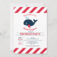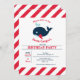 A cute and stylish invitation featured for a baby shower but well-suited for juvenile birthday parties as well. The little whale has a red and white top, bottom and striped back. (<a href='http://www.freepik.com/free-vector/birthday-card-with-nautical-elements_886557.htm'>Designed by Freepik</a>). <br/><br/>The card is easy to customise with your wording, font, font colour, paper shape options and choice of six paper types.<br/><br/>Not exactly what you're looking for? All our products can be custom designed to meet your needs at no extra charge.<br/><br/>Simply contact us at heartfelthelper@gmail.com.<br/><br/>Coordinating products available: Just ask us!