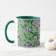 Lilac flowers on green background, pretty vintage pattern in the style of William Morris.