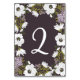 Customisable table numbers card featuring white, lilac and lavender flowers and modern calligraphy script. This is a part of a wedding suite "ANEMONE BLOOMS" - matching items are available.