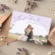 Elegant and minimal wedding thank you photo card featuring a large lilac arch frame with a script font that says "thank you" at the top. You can add a second picture on the back with a message.