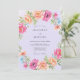 This design features a soft lilac backdrop adorned with a dense arrangement of watercolor flowers. Blooms in shades of peach, magenta, and pink mingle with delicate light blue accents and fresh green foliage. Elegant peonies and roses create a romantic and airy aesthetic perfect for a seasonal springtime occasion.