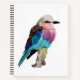 Realistic pastel-coloured Lilac Breasted Roller bird (from Africa), painted in watercolour.