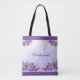 Lovely lilacs are the theme of this elegant Bridesmaid tote bag with a border of pink and mauve lilac sprays on a gradient pale purple background. Easily personalise the text to suit your special occasion.