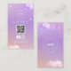 A lilac-to-purple gradient with stars and clouds scan to connect with us on Facebook and Instagram QR code business cards. This chic and modern template can easily be personalised with your company logo and details. Contact the designer if you would like to add different icons such as Twitter, YouTube, WhatsApp, etc.