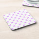 Lilac cross stitches on white coaster