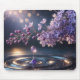 Delicate lilac flowers gracefully extend over a shimmering pool of water, with a striking water droplet creating ripples below.