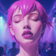 Lilac Dream Whisper – A Serene and Ethereal Purple Portrait. A serene and ethereal close-up portrait of a feminine face in hues of lilac and white. The soft stylised brushstrokes and abstract elements give this artwork a dreamy quality, inviting the viewer to lose themselves into the dreamlike calm and introspection of the subject.