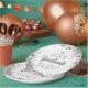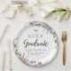 Affordable custom printed graduation party paper plates. This pretty feminine design has a watercolor floral border with pastel purple flowers and greenery. Personalise the template with your grad details. Use the design tools to choose any background colour and fonts you like or upload your own photos to further customise the design.