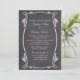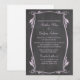 Elegant and trendy Flourish Chalkboard Wedding Invitation featuring a chalkboard look background and a fancy swirl and leaf art deco border in purple. Easy to customise, simply add your wedding details. Click "Customise It" to find more personalisation options.