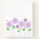 A notebook with lilac flowers and a green tag. Customise the notebook with your special name, background colour, among other options.