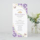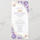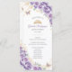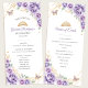 Lilac purple, green, gold and white Quinceanera celebration program. Slim double sided order of events card. Features, script font, gold butterflies, watercolor roses and tiara. Perfect for an elegant princess style glam celebration. Personalise with your own details.