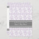 Personalised baby shower invitations in elegant and modern light pastel lavender purple, grey and white classic floral vintage damask pattern. Customisable with your text, contact us to request a colour change.