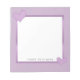 Two lilac hearts with sparkly glitter-like borders overlaying a lilac bordered frame, against a lilac background - so feminine! Personalise the notepad with your own name or text.