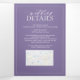 We're loving this trendy, modern Lilac Lavender Trifold invitation simple, elegant, and oh-so-pretty, it features a hand drawn leafy wreath encircling a modern wedding monogram. It is personalised in elegant typography, and accented with hand-lettered calligraphy. Finally, it is trimmed in a delicate frame. To remove meal choices in the RSVP section, we have created a how-to video for you here: https://youtu.be/ZGpeldQgxoE. A Wedding Details contains extra details like, driving directions, reception information, hotel information, etc. This can also include your wedding website including provision for a map (via screen capture) has been included, and even your favourite engagement photo on the back! Veiw suite here:
