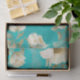 turquoise background antiqued white flowers
