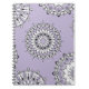 A spiral bound notebook featuring my Mandala Pattern 1, printed on a Lilac background.