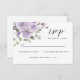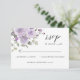 Modern elegant mauve purple floral wedding RSVP card. RSVP card featuring hand painted watercolor flowers and greenery in shades of violet, purple, lilac, mauve and green and modern calligraphy script. You can personalise the wording, font style, colour and size in front and back of this botanical RSVP card. Matching items available.