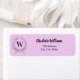A lilac coloured background. Decorated with a wreath. Personalise and add your name, address and family monogram initial.