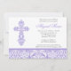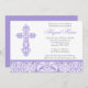 Lilac Ornate Cross Damask Girl Baptism Christening Invitation