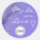 Lilac Palm Tree Leaf Made with Love Logo Template Classic Round Sticker