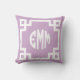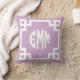 Lilac Purple and White Greek Key Circle Monogram Cushion