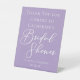 This lovely lilac purple bridal shower pedestal sign features beautiful white typography on a pretty pastel color for a spring afternoon event. Minimalist script and a delicate color on bridal shower party decor for an elegant garden occasion.