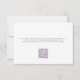 This Lilac Purple Floral Elegant Wedding RSVP Card showcases delicate flowers on a light purple background, complemented by contemporary typography. Guests can write in their names and dietary preferences, or they can use the QR code on the back to respond online. It is fully customisable with the couple's names and respond by date, as well as the QR Code and instructions on the back. The formal design and wording will add a touch of elegance to your wedding celebration. If you don't wish to use the QR Code, just delete the URL and instructions on the back.
