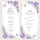 Lilac purple, silver and white Quinceanera celebration slim double sided program and menu card. Features, script font, silver butterflies, watercolor roses and tiara. Perfect for an elegant princess style glam celebration. Personalize with your own details.