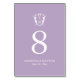 This elegant wedding table number card features a monogram crest with the bride and groom's initials, names and wedding date in white over a lilac purple background. Use the template fields to add your custom details. Click on "Edit using design tool" to change the colours and fonts. To see more wedding table decoration ideas like this visit www.zazzle.com/dotellabelle