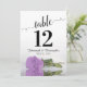 These beautiful table number cards will make it easy for your guests to find their seats at your wedding reception. Features a gorgeous design with lacy script calligraphy and a single lilac purple coloured rose lying on its side with ripples waves and reflections. There is space for the couple's names and wedding date.