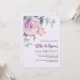A soft lilac coloured background. Decorated with a lilac and purple rose and green watercolored eucalyptus greenery. Personalise and add your name and party details.