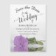 These beautiful magnetic cards are the perfect way to let your friends and family know to save the date for your upcoming wedding. They feature a romantic design with a single long stemmed lilac purple coloured rose reflecting in a pool with waves and ripples. Classic & elegant, the simple design includes lacy script calligraphy lettering.